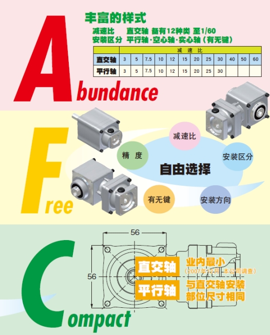 伺服電機(jī)用減速器 高精度低間隙規(guī)格 平行軸,直交軸,空心/實(shí)心軸,同心空心/實(shí)心軸