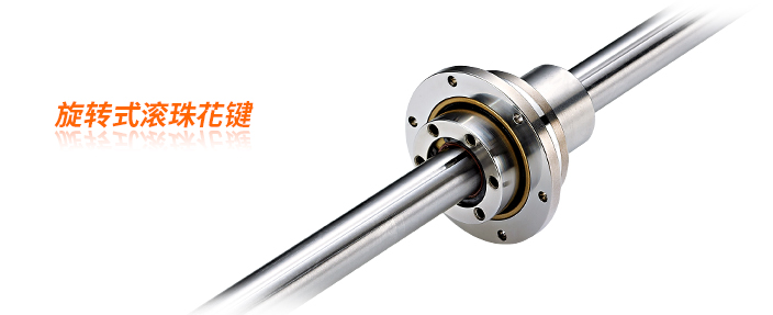 旋轉(zhuǎn)式滾珠花鍵是在花鍵軸外徑上設(shè)有3列負荷鋼珠列,并采用哥德牙設(shè)計讓3列鋼珠可同時承受順、逆時針之扭矩,以增加使用壽命及剛性?;ㄦI帽外徑上有直接裝設(shè)的特殊軸承,且借由花鍵帽的旋轉(zhuǎn)或停止,讓花鍵帽能同時具備2種模式的運動:旋轉(zhuǎn)與直線。