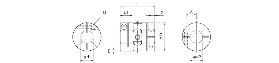 | 型號(hào) | d1, d2 | D | E | L | L1 | L2 | M | A | |