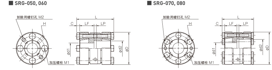 ※加壓螺栓M1和卸除用螺釘孔M2公稱為數(shù)量-螺釘公稱。數(shù)量是單側轂的數(shù)量。
